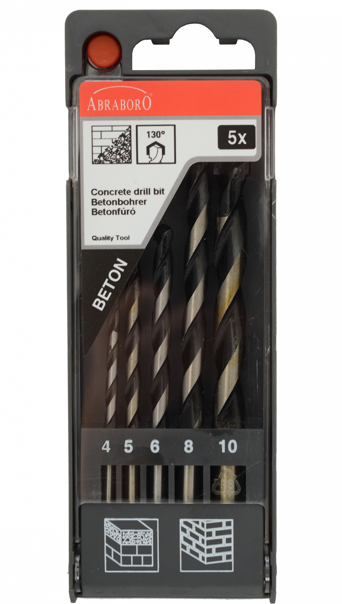 Abraboro 5 részes Standard betonfúró készlet műanyag dobozban