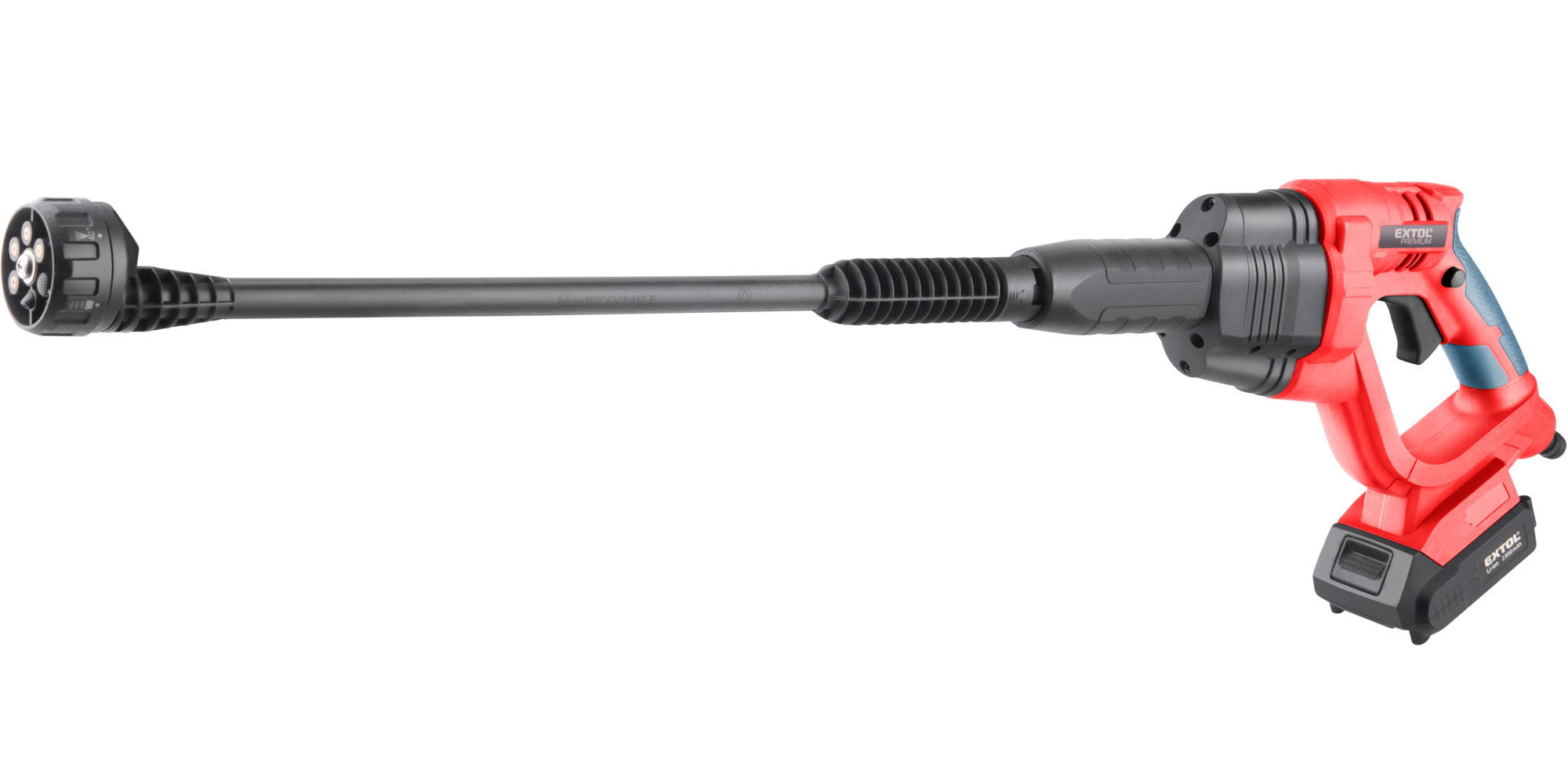 - Az Extol® Premium 8891858 akkus nagynyomású mosóhoz 2.0 Ah kapacitású 20 V-os Li-ion akkumulátor, és 2.4 A töltőáramú akkumulátortöltő is tartozik.