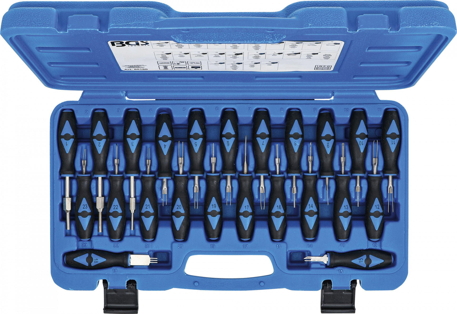 BGS Technic 9-60160 kábelcsatlakozó szerelő, saru eltávolító készlet, 23 részes *