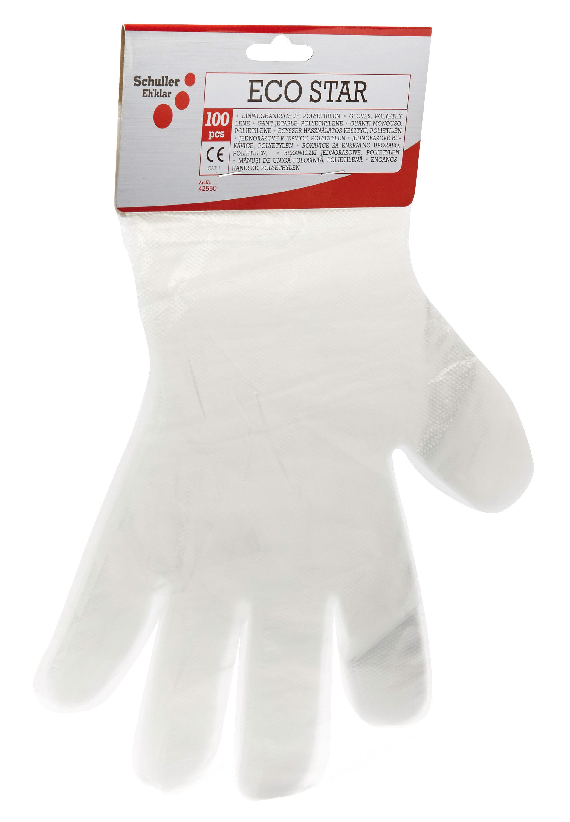 Schuller ECOSTAR egyszerhasználatos kesztyű polietilén fóliából, 100 db/csomag