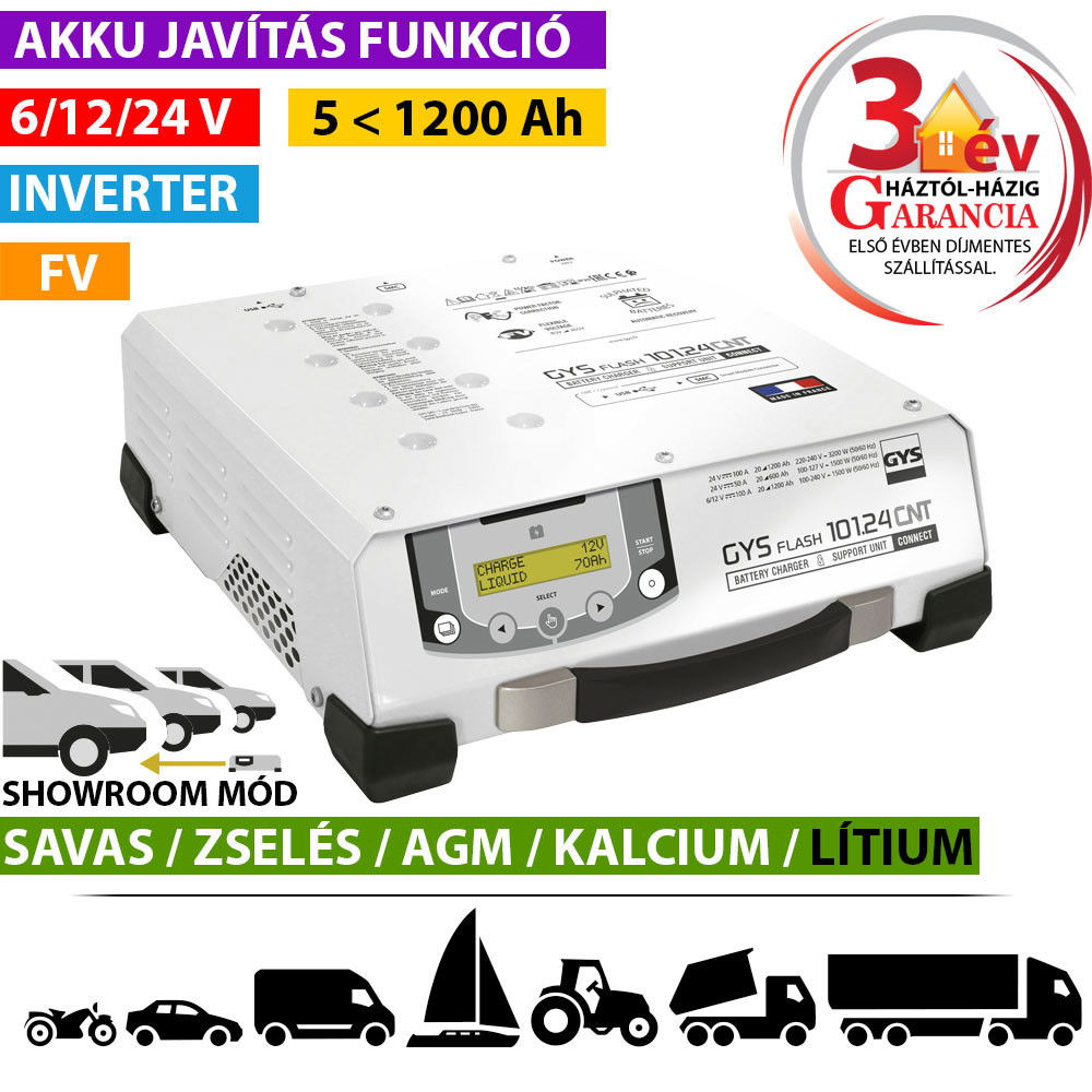 GYSFLASH 101.24 CNT FV inverteres akkumulátor töltő