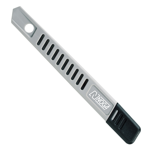 Egyedülálló műanyag markolat, pengetároló rekesszel.