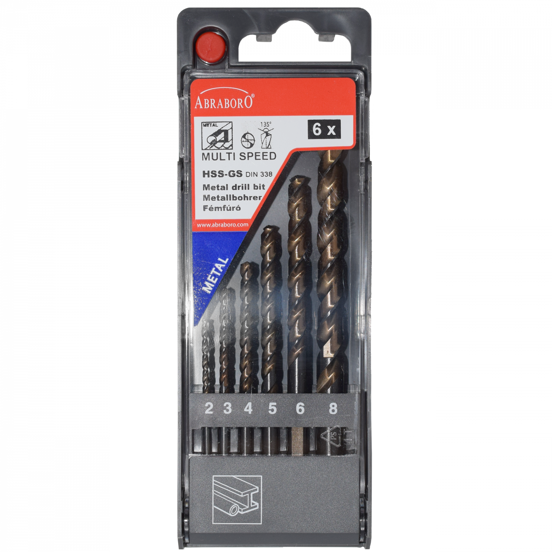 Abraboro MULTISPEED HSS-GS 6 részes köszörült fémfúró készlet, műanyag dobozban
