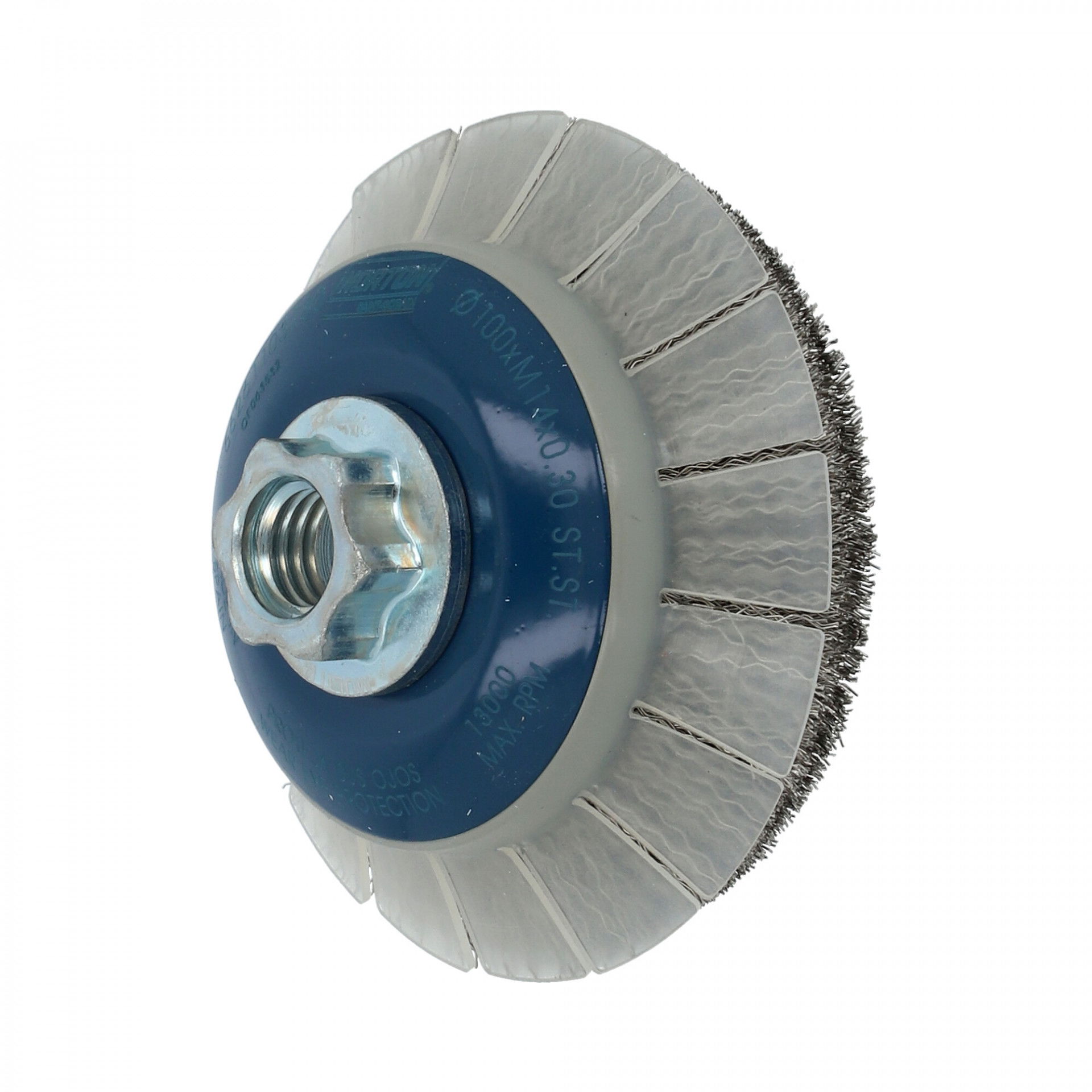 Norton hullámos kúpos drótkorong inox (kefekorong) védőburkolattal 100xM14 T24